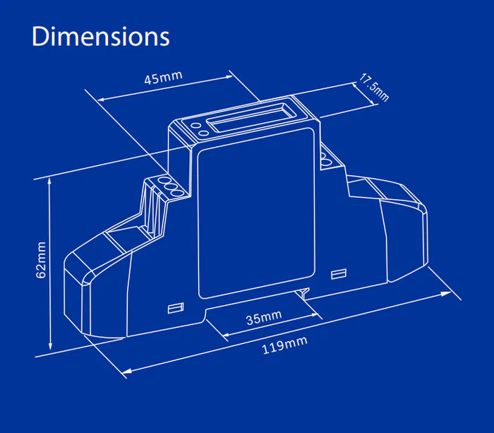 • Configurable pulsed output (Import, Export, Nett kWh)